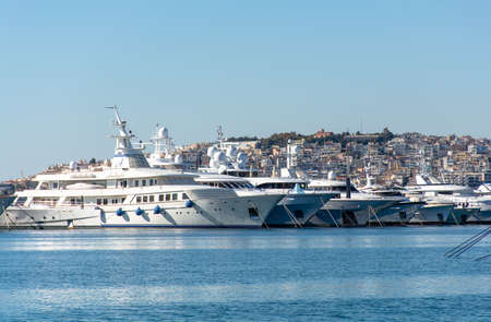 Beautiful yachts on the pier against the blue sky, Athens embankment