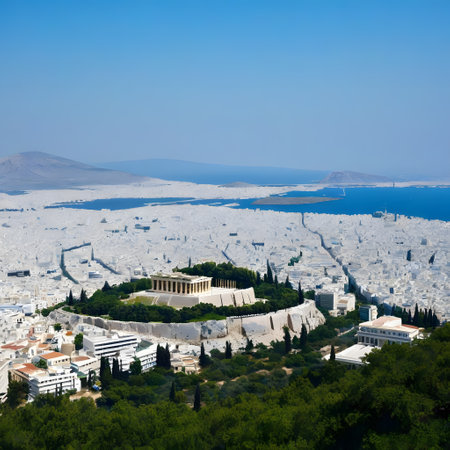 landscape views taken from the Acropolis and Parthenon Athens Greece. High quality photo