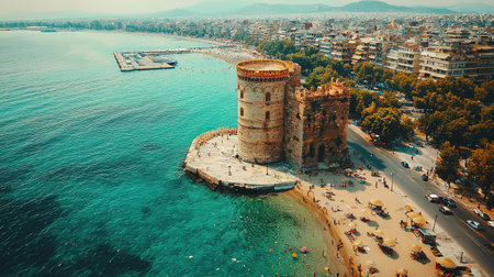 THESSALONIKI, GREECE - SEPTEMBER 22, 2019: Panorama from White Tower to city of Thessaloniki, Central Macedonia, Greece