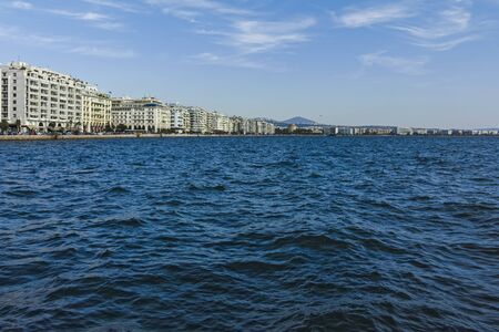 THESSALONIKI, GREECE - SEPTEMBER 22, 2019: Cityscape with embankment of city of Thessaloniki, Central Macedonia, Greece