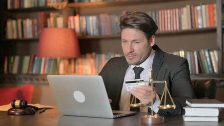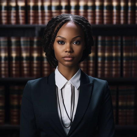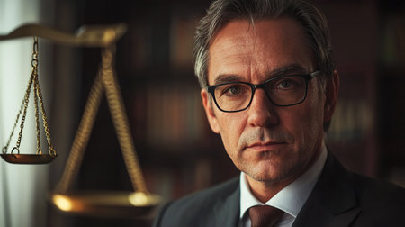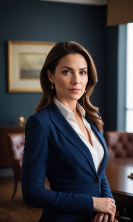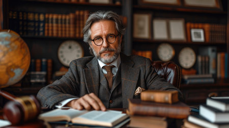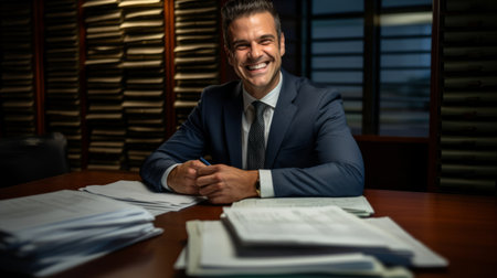 Accomplished lawyer in a grand legal office, symbolizing professional and legal success.