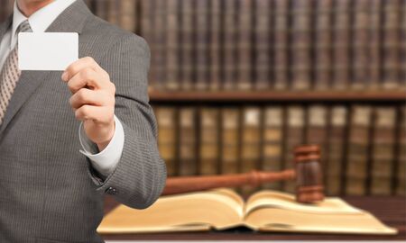 Judges gavel standing in front of the male lawyer is providing service to consult business dispute.