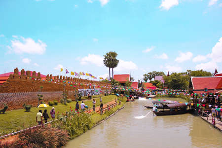 KANCHANABURI THAILAND-JULY 16,2019 : Handicrafts, homemade food, cotton clothes and more from local producers come to forming community and setting local market called World War ll Bridge Project near The Bridge on the River Kwai in Kanchanaburi Thailand.