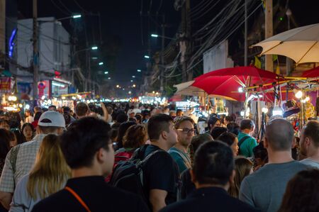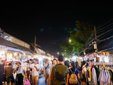 Chiang Mai Walking Street CHIANG MAI THAILAND-12 JANUARY 2020:A local handicraft market made from silk,ceramics,metal,glass,wood or art and food Thai tourists and foreigners enjoy walking and shopping