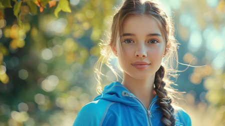 This close-up portrait captures the vibrant energy of a teenage girl, radiating confidence and modern style Her youthful strength shines through, showcasing a vibrant spirit and a bold, contemporary look The intimate framing emphasizes her individual character and youthful charm AI Generative