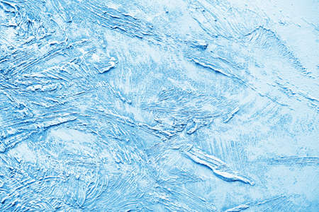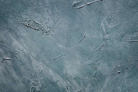 Blue paint stucco wall texture. Concrete surface background. Color plaster wall pattern. Artistic smudges of plaster on the wall. Decorative wall paint technique.