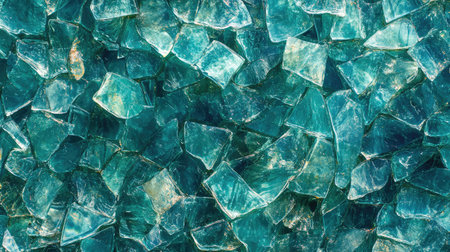 Stunning close-up view of broken glass shards displaying captivating turquoise colors and fascinating textures. Perfect for artistic projects.