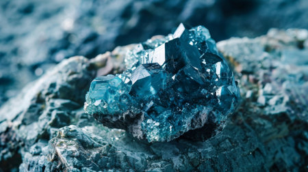 A close-up view of stunning blue mineral crystals showcases their detailed facets and textures. Perfect for geology enthusiasts and nature lovers, this image captures the striking vibrancy and beauty of natural formations.