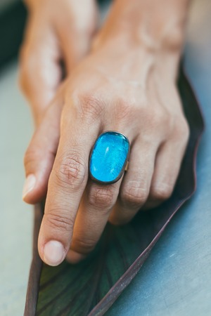 Master jeweler produces a ring with a big blue stone