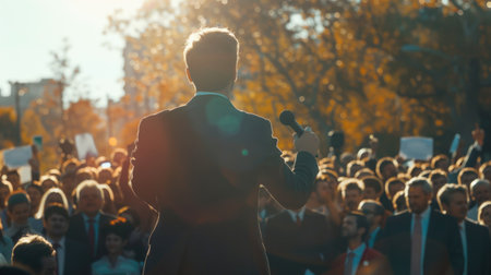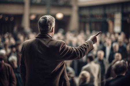 Confident businessman delivering powerful keynote to diverse audience at conference