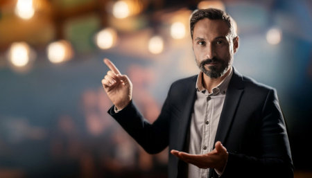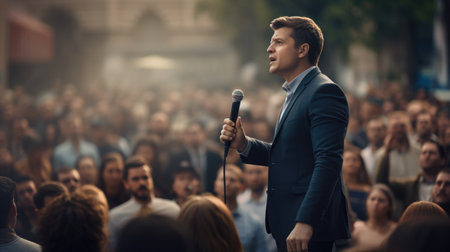 Speaker, charisma and confident address for impactful communication, leadership and public presence