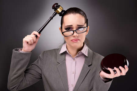 Woman judge with gavel in justice concept