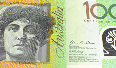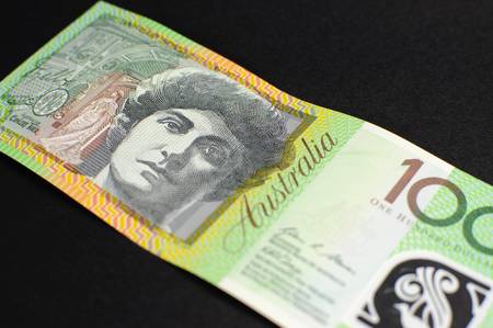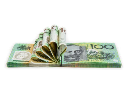 Australian dollar, Australia money 100 dollars banknotes stack on white background with clipping path.