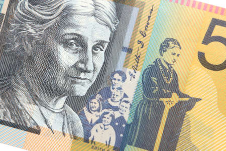 Various Australian currency cash dollars AUD banknotes different currency denomination on white background