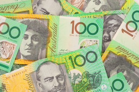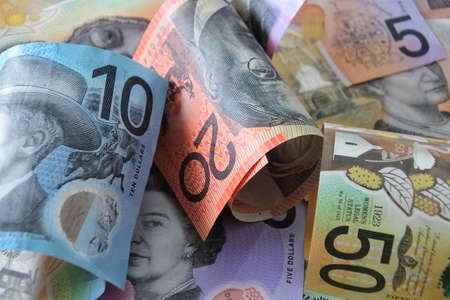 Australian dollar banknotes as financial background, different color banknotes. AUD, cash