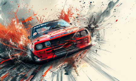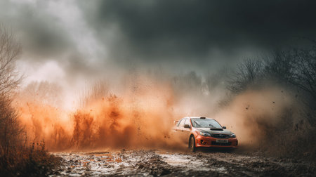 A dynamic image of a racing car speedily navigating a challenging course with debris flying around. Generate AI
