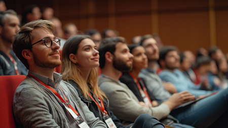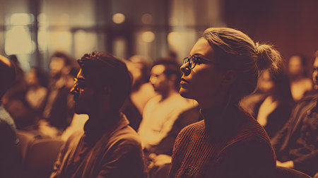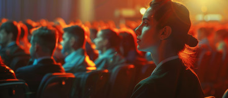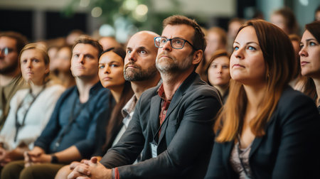 A focused audience engaged in a presentation, highlighting emotions and attention. This image captures the essence of learning and collaboration in a professional setting.