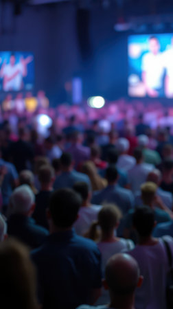Attendees immerse themselves in thought-provoking discussions as keynote speakers inspire creativity and innovation at a bustling business conference held in an illuminated venue.