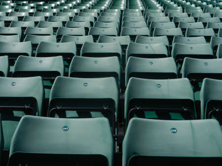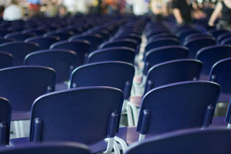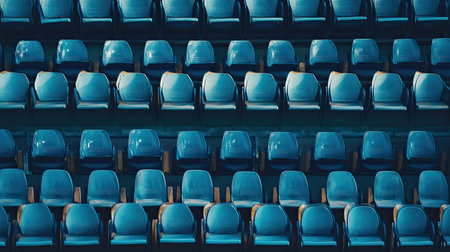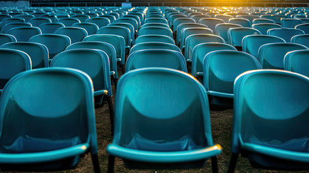 Rows of plastic chairs await passionate fans at the sport stadium, anticipating the thrill of competition. Invest in the excitement of live sports.