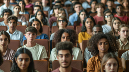 Multiethnic group of university students in lecture hall