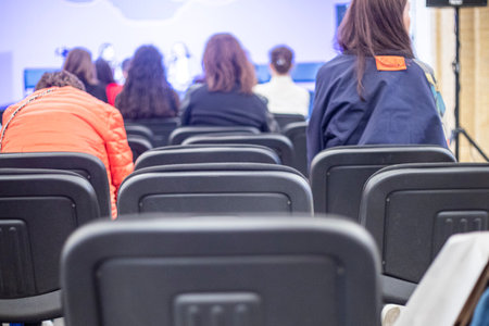 students listeners at a scientific conference. Science and education