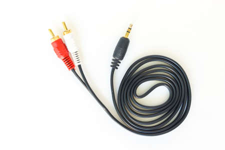 Audio cable on a white background. Shallow depth of field.
