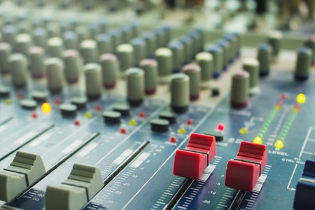 audio mixer in the studio for mixing audio from different musical instruments and voice.