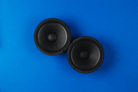 professional speaker system made of expensive materials on a black background with two speakers and copy-space