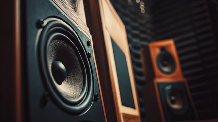 Closeup of black premium loudspeaker for music and home theater system with color mood and tone style