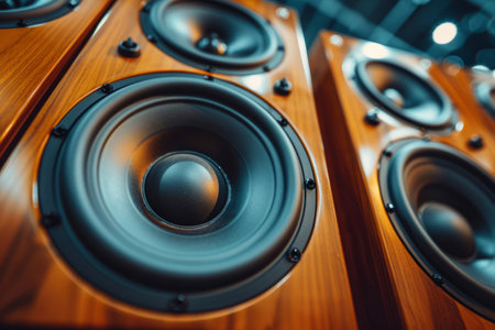 Close-up of a high-quality speaker cone, showcasing the intricate details and engineering of the audio device, emphasizing precision and craftsmanship