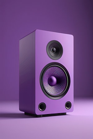 Stereo speaker on purple colored background. Sound audio loud speaker with copy space