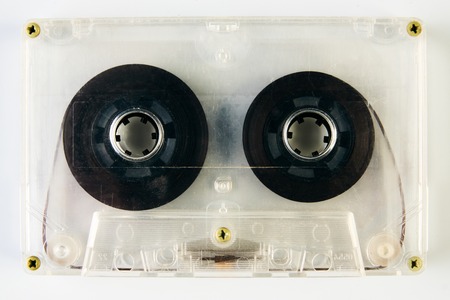 The vintage audio cassette tape, analog magnetic tape format for audio recording and playback.