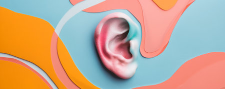 Colorful human ear on abstract pastel background, creative artwork. Modern art concept