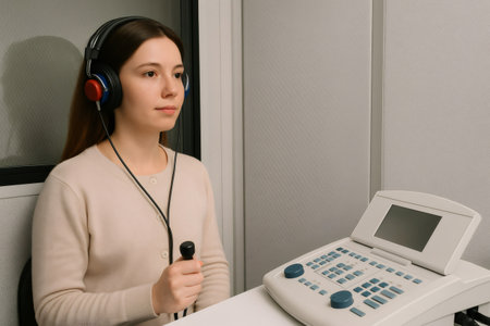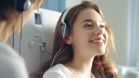 Tranquil patient undergoing an audiometry test performed by an audiologist