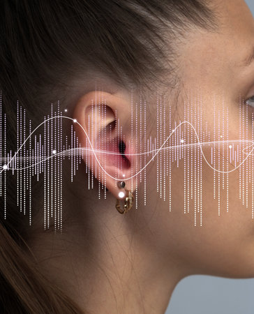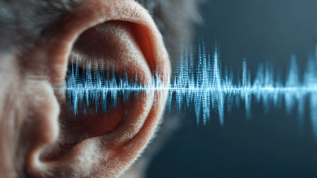 Womans ear with sound waves overlay creating a vivid representation of auditory experience