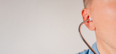 A man with a stethoscope with a place for text on a uniform background