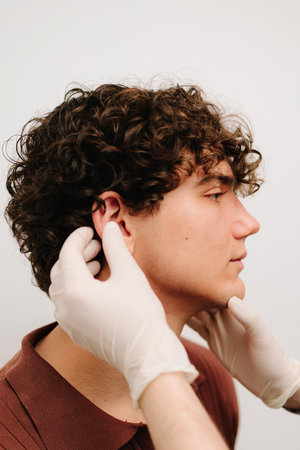 Close-up Of Doctor Examining Male Patient's Ears