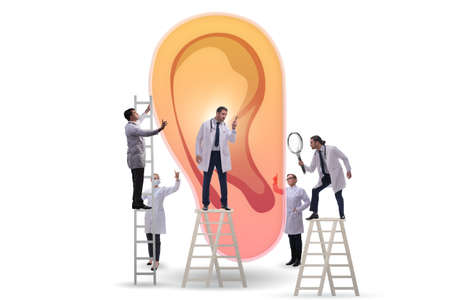 Doctor examining giant ear in medical concept