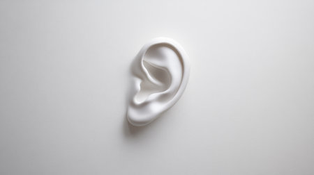 White ear sculpture representing hearing, sound, and hearing problems, isolated on a white background, providing a minimalist and conceptual image suitable for healthcare and medical themes