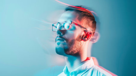 This striking image captures the essence of shifting identities using motion blur to convey the complexities of self perception and the passage of time.