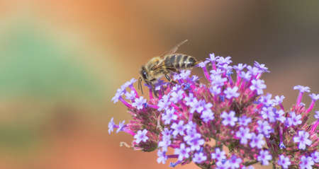 A bee collects nectar from the flowers of oregano.