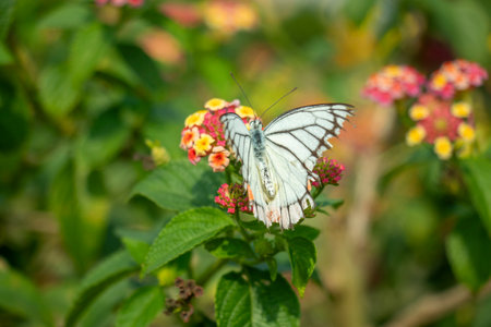 White butterfly on Lantana flower.