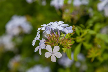 bush with blossom white flowers in sunny day