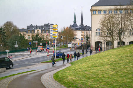Luxembourg: view on the Boulevard Franklin Delano Roosevelt of the judiciary city. Luxembourg City, Luxembourg - April 4 2016