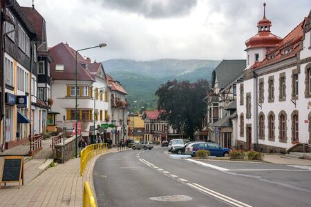 Szklarska Poreba, Poland - September 9, 2019: View of the main street of Szklarska Poreba town, well known tourist resort in Giant Mountains