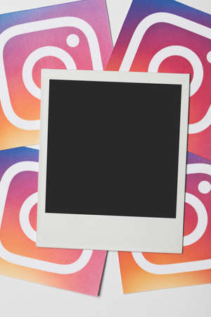 OXFORD, UK - DEC 7 2016: Blank polaroid frame with Instagram social media logo