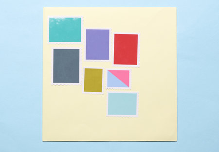 many picture moment of a couple of love decorate on a blue pastel wall interior,daylight,selective focus