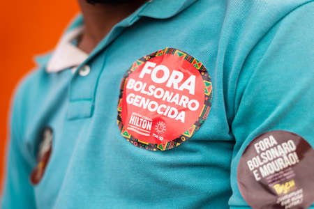 Salvador, Bahia, Brazil - July 03, 2021: Brazilians protest against the government of President Jair Bolsonaro in the city of Salvador.