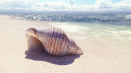Big natural seashell on the summer beach in clear sea water. ocean background.