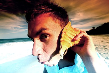 Old weathered conch shell background. Tropical sea conch wallpaper